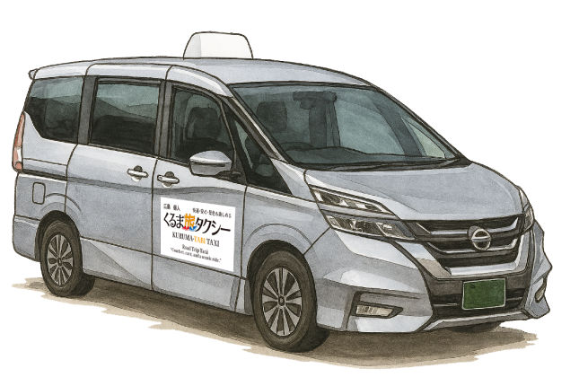2台に分かれる必要はありません。「くるま旅タクシー」は、自家用車のように、自由で快適な広島の旅をサポートします。